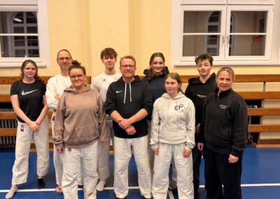 Insgesamt 29 Sportlerinnen und Sportler stellten sich der Herausforderung, die erste Trainerlizenzstufe im Ju-Jutsu zu erwerben – darunter auch 8 hochmotivierte Teilnehmende aus dem Akatuki.